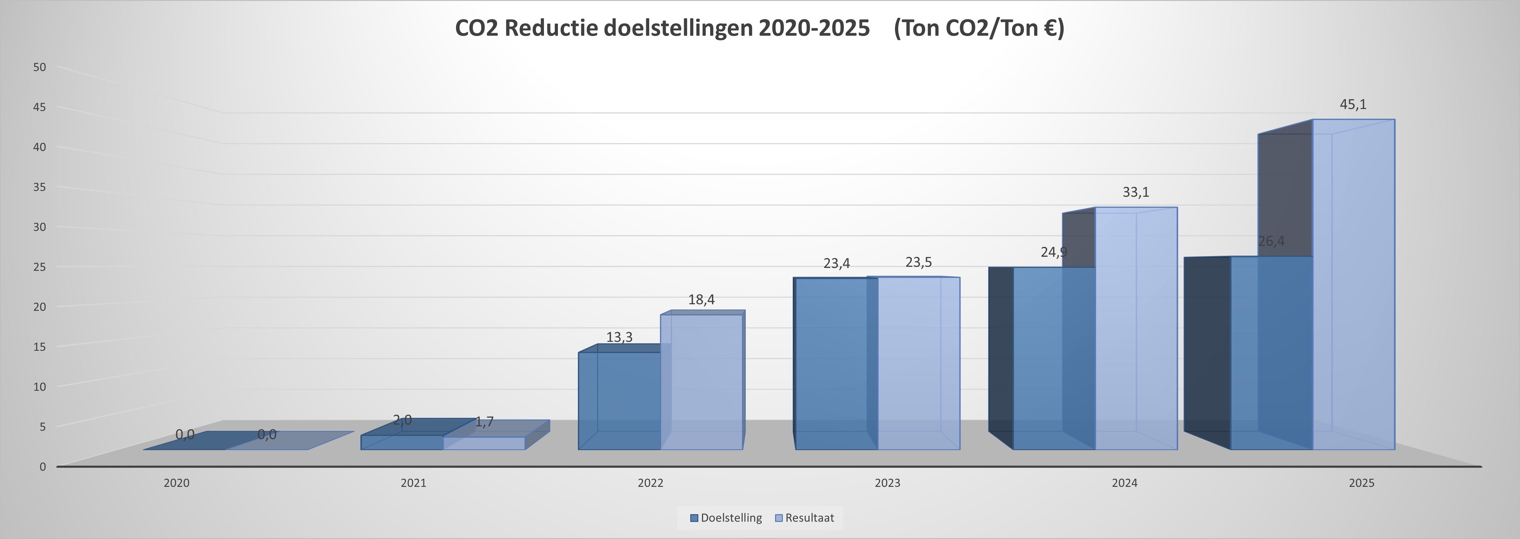 Per midden 2025 lopen we dus ruim voor op onze geplande CO2 reductie.